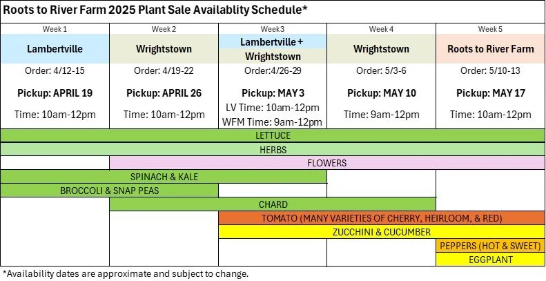 Pre-order & pickup your organic transplants in Lambertville and Wrightstown Farmers Market, Saturdays mid-April through May. Check the schedule and expected plant availability below.